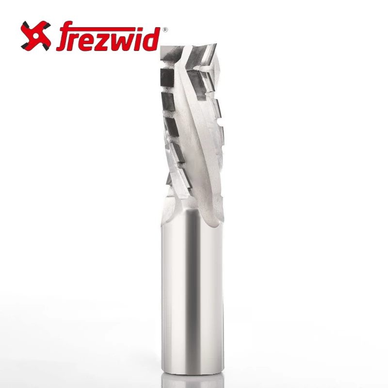 Frez do nestingu z ostrzami PCD (polikrystaliczny diament) to narzędzie stworzone do obróbki materiałów drewnopochodnych na centrach CNC. Trzy pełne ostrza plus trzy przeciwbieżne (z3+3) płytki diamentowe pozwalają na szybkie i precyzyjne zagłębianie w materiał, frezowanie i rowkowanie płyt laminowanych, MDF/HDF oraz płyt fornirowych. Diamentowe ostrza wysokości 4 mm jest możliwa do ponownego ostrzenia, co wydłuża jej żywotność i obniża koszty eksploatacji.