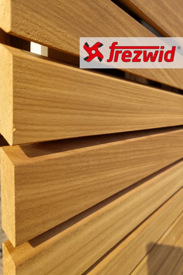 Uniwersalność materiałów — frez nadaje się do obróbki różnych gatunków drewna często używanych do elewacji – modrzewia, świerku, sosny czy drewna termo, podobnie jak profile rhombus dostępne na rynku.